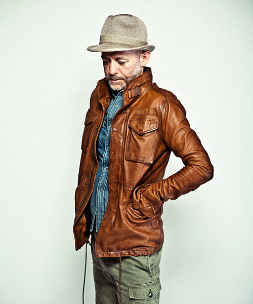 | Detail | 伝統的なM-65の形ではあるが、着用しやすいように着丈は若干短めに調節。ドットボタンもすべて隠しボタンにし、スッキリとした表情に仕上げたモデル。縫製後に加工を組み合わせてレザーにヴィンテージ感を追加。 |