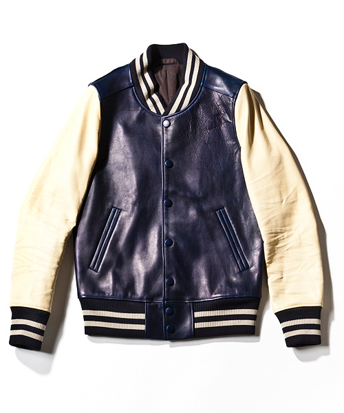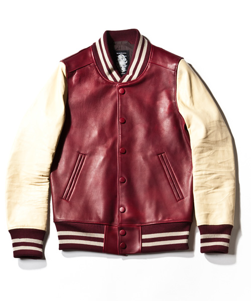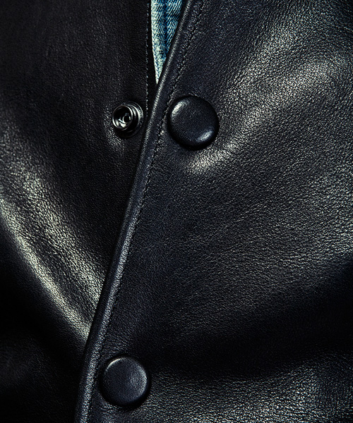 | Material | グローブレザーの素材を使用。大リーガー達が使用するグローブでも用いられる頑丈な日本産のカウレザー。レザーらしいしっかりとした表情も持ちつつ、滑らかな質感を備えている。最初は硬く感じるが、着ていくごとに風合いが増していき、着用者の体になじんだ形へと変化していくレザー。 |