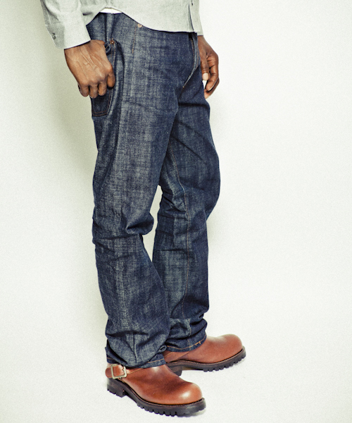 | Detail | 1890年代の501を元に、現在の技術で蘇らせたヴィンテージデニムの生地で製作したリジットデニム。ファスナーには当時のアメリカ製デットストックTALONを使用。サスペンダー、シンチバックにてウエスト調整も可能な上、ベルトループも加え実用性を追加。シルエットはウエストオーバーオールと言われた当時のシルエットを元にACANTHUSオリジナルのシルエットにパターン修正。当時のデニムの雰囲気とで完成度の高さに拘ったデニムパンツ。 |