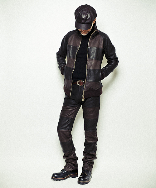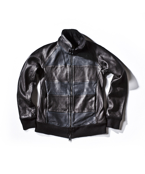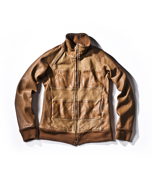 | Detail | ACANTHUSで継続的にリリースしているシンプル仕様のトラックJKTが原型。特殊な製品染の為複雑なパターンを使用。内衿、袖、裾にはリブを使用。製品染め加工、ドラミング加工の表情がすべて詰まっており他では見る事のできない加工、雰囲気、仕上がりになった12AWシーズンを代表する唯一無二のレザートラックJKT。 |