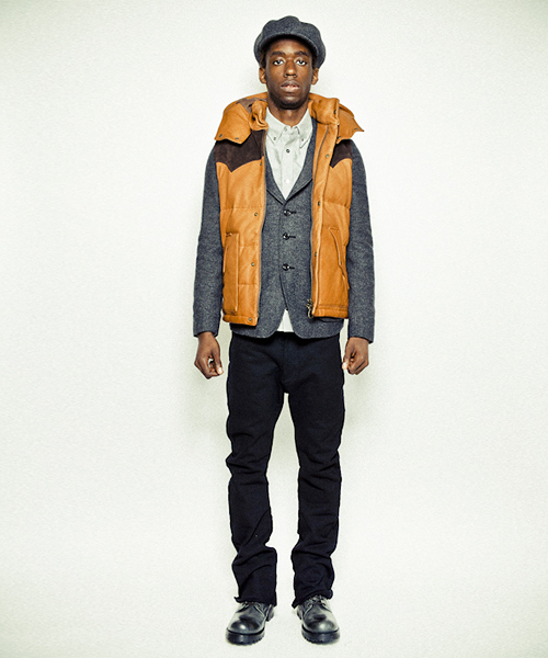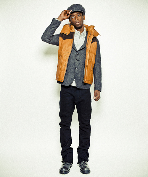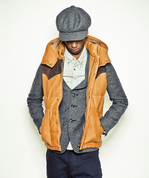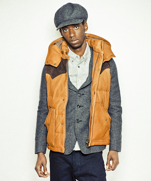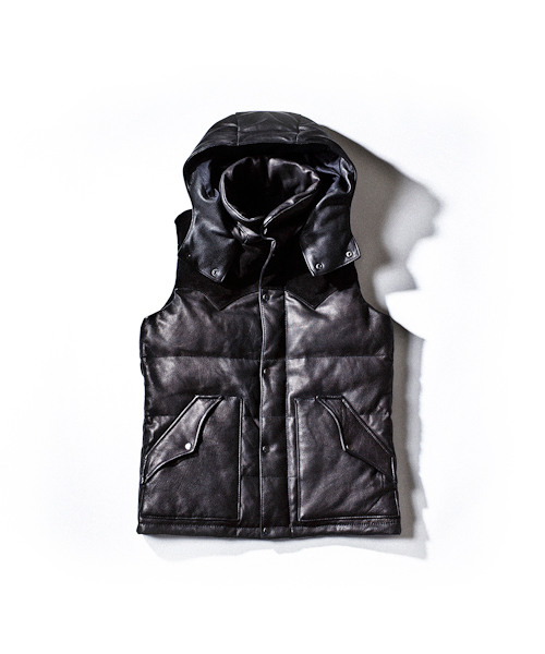 | Detail | ボディにはディアスキンナッパ、ウエスタン調なフロントとバックヨークの切り替え部分にはモンテベロー社のカーフスウェードを使用したダウンJKT。上質なダウン綿をレザー素材に合わせてダウン量はダウン8:フェザー2の割合にて設定。レイヤードを考慮しダウンJKTとは微妙に身幅等のバランスを調整した綺麗なシルエットは保つパターンを採用。フードはドットボタンで取り外し可能となっており取り外した後も衿をキレイな状態に保つ為にドットボタンが姿を隠す仕様を採用している。裏地には立体感を出す為にウォッシュ加工を施したオリジナルの迷彩生地を採用。素材だけでも大きな存在感を放つ拘りの詰まったダウンベスト。 |