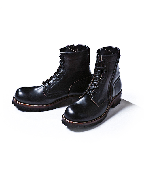 | Detail | ホーウィン社のクロムエクセルレザーを使用したワークブーツ。ソールにはグリップ力に優れ、耐摩耗性も高いビブラムソールの#1100を使用。さらにグットイヤーウェルト製法にて仕上げてある。サイドアッパーにはTALONファスナーを切り替えのように配置し脱着も容易となっている。トゥの形には通称“おでこ型”を採用。経年変化により増すクロムエクセルレザーの風合いを存分に楽しむ事のできる、屈強な作りの本格的な1品。 |