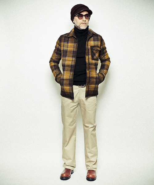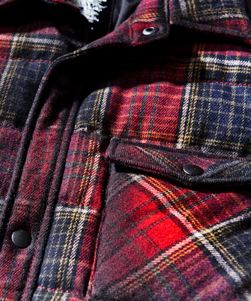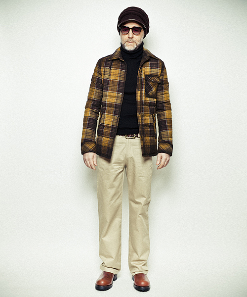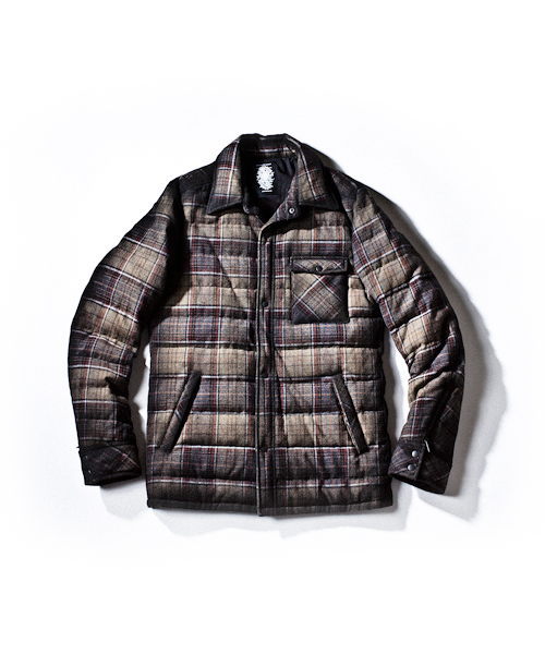 | Detail | 暖かみを感じるウールチェックネル素材のダウンシャツJKT。2011AWのダウンシャツのアップデートモデル。縫製後、パーツの各々部分に顔料の吹き付けの特殊加工を施してある。陰影感のある存在感のある仕上がりとなっている。ダウン分量は控えめに抑えライトアウター、もしくはオーバーコートのインナーとしても使用できる万能アイテム。 |