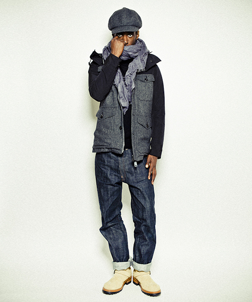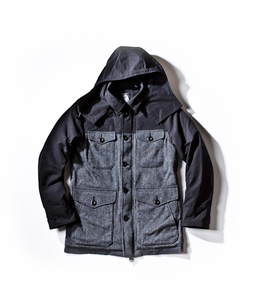 | Detail | クラシックなヘリンボーン素材と、64クロスを用いマウンテンパーカー型JKT。下部には現代的で上質なヘリンボーン素材を使用し、上部には当時から現在まで幅広くマウンテンパーカーの素材として用いられる64クロスを使用。裏地にはオリジナル加工を施した迷彩柄にキルティング加工を施している為防寒性は高い。衿元には取り外し可能なフードが付く。対照的な素材感である2種類の生地の雰囲気がマッチしたクラシックなマウンテンパーカー。 |