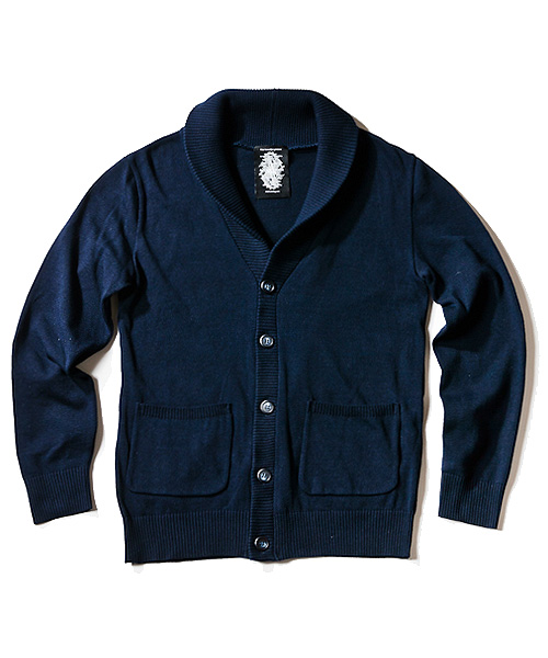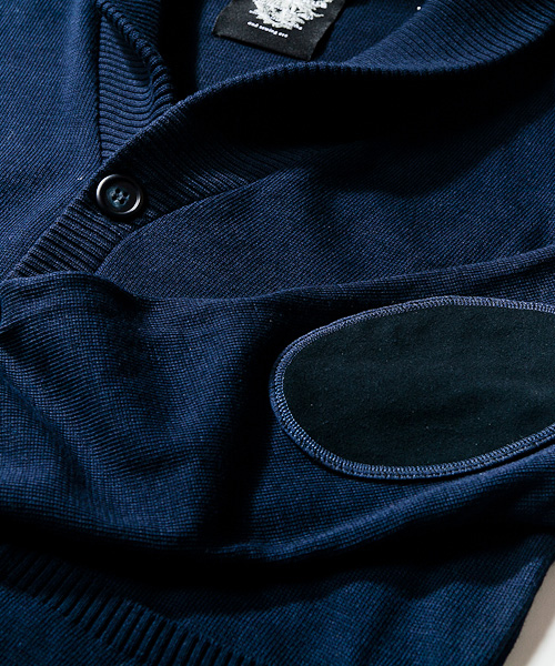 | Detail | コットンニット素材のショールカラー仕様のカーディガン。エルボーパッチは上質な表情の鹿革のスプリットスウェードを使用しており、クラシックで上質な雰囲気を持たせた。素材はコットンニットなので年中軽い気心地で羽織る事が可能。アウトポケットなども配置し機能面でも非常にバランスのとれた1着。 |