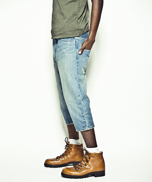 | Material | 素材は、ヴィンテージデニムを使用。アメリカで生まれたデニムは元来、糸の太さを均一にする事が技術的に出来なく様々な太さの糸での生地しか存在しなかった。 |