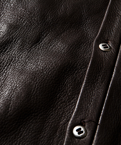 | Detail | 定番で提案し続けるのベーシックシャツに厳選した鹿革を使用したモデル。今シーズンから初期シャツのディティールである背中心に入る巻き縫い仕様を追加し、仕様クオリティを向上。シンプルに削ぎ落としたデザインに、狩猟によって捕獲された自然な表情を持つ滑らかで肌理細やかな鹿革を合わせたミニマムで贅沢な1着。カッティングに拘ったパターンにより、吸い付くような素材感を最大限に生かしたフィッティングを実現。革を身にまとう喜びを感じる事のできる1着。 |