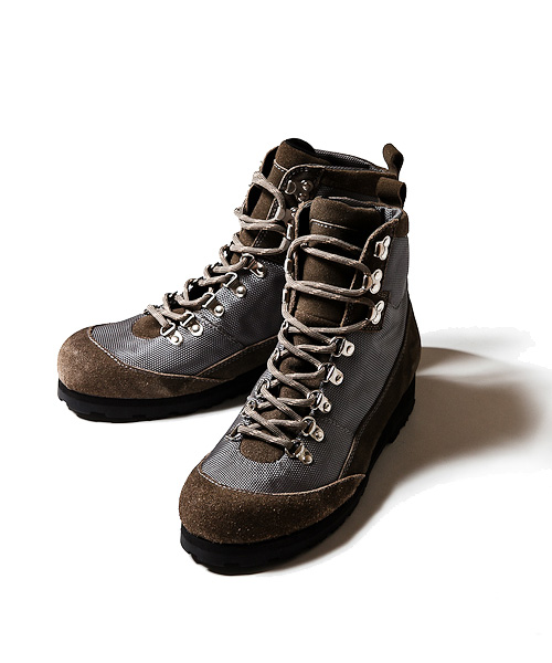 | Detail | 上質なカウスプリットスウェードレザーと組織が厚く頑丈な素材感のナイロン素材のコンビ。こちらはLB1201 mountain bootsとは対象的に見た目よりも軽量で爽快な履き心地を実現している。マウンテンブーツとコンバットブーツの要素をミックスしたモデル。 |