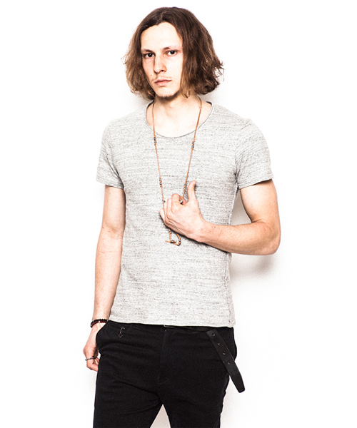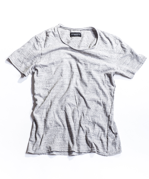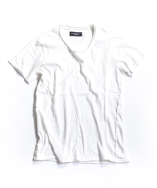 | Detail | 縫製後環境にも考慮したオゾン加工にてUSED加工を施している。オゾン加工とはタンブラーのような機械の中で、酸化性の強いオゾンを発生させ、その酸化作用でUSED加工を施す加工。有害な脱色剤の残留と排出が全くなく、水もほとんど使わないため汚水もなく加工することが出来る極めて、エコロジカルな加工技術。定番的にリリースしている随所にカットオフのパーツを使用したベーシックTシャツ。 |