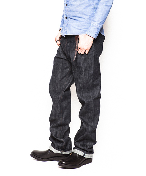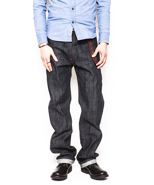 | Detail | 1890年代の501を元に、現在の技術で蘇らせたヴィンテージデニムの生地で製作したリジットデニム。ファスナーには当時のアメリカ製デットストックTALONを使用。サスペンダー、シンチバックにてウエスト調整も可能な上、ベルトループも加え実用性を追加。シルエットはウエストオーバーオールと言われた当時のシルエットを元にACANTHUSオリジナルのシルエットにパターン修正。当時のデニムの雰囲気とで完成度の高さに拘ったデニムパンツ。 |