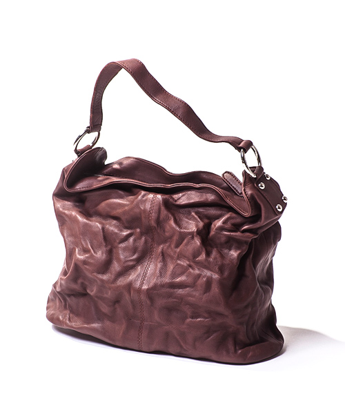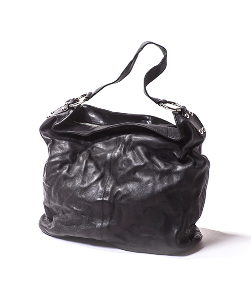 | Detail | 小ぶりなハンドバッグ仕様。一部にハンドステッチ仕様となっている。縫製後、職人の手作業によるシワ加工を施している。ユニセックスな仕様、デザインの1品。 |