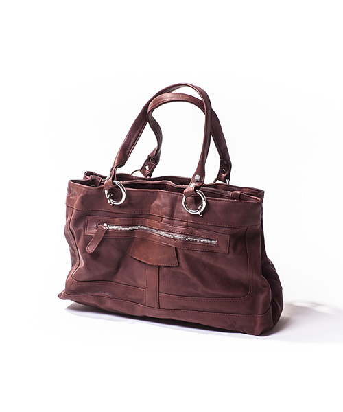 | Detail | 小ぶりなハンドバッグ仕様。ファスナー等の金属パーツが特徴的な仕様となっている。カバンの入れ口も2つ仕切られており、用途によって使い分けも便利な仕様。縫製後、職人の手作業によるシワ加工を施している。ユニセックスな仕様、デザインの1品。 |