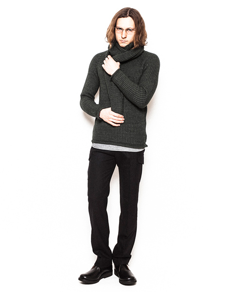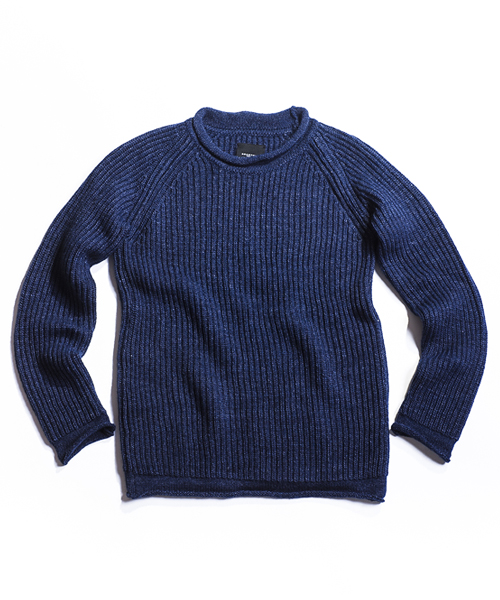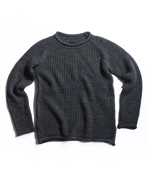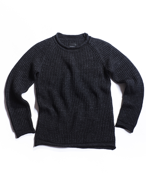 | Detail | 毛は細いのに強く耐久性に優れていて、ウールのような毛玉もほとんどできず、シワにもなりにくいのが特徴のアルパカウールを使用。毛に光沢と深みが含まれており、VINTAGEに近いニュアンスの表情をはじめからもつ糸。組織.ゲージは両畦リブ1×1。5G仕様。デザインは成型編仕様。うまく襟元、袖口、裾が反り返る様に編地の度目を調整している。非常に軽くラグランスリーブで着心地の良い1着。 |