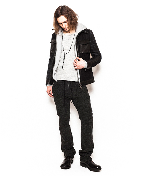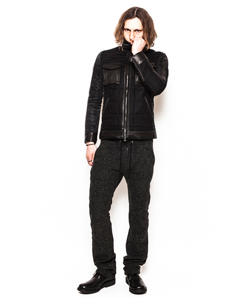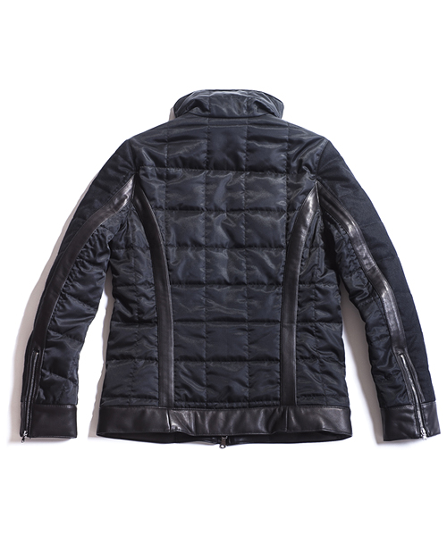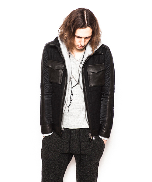 | Detail | 表生地にはウールの産地である尾州(一宮)の機屋の独自技術により開発されたトップ糸を使い織り上げた薄手のメルトン素材を使用。ナイロン素材には東レナイロン糸を使用した、国内の機屋・染工所にて生産された上質で品質の高い生地を使用。革にはUKラムを仕様し異なる3種類の素材を中綿キルティング加工して仕上げている。裏地には迷彩生地を採用。ファスナーにはRACCAGNI 社製の物を使用。高級感のある素材でまとめた防寒性の高いアウター。 |