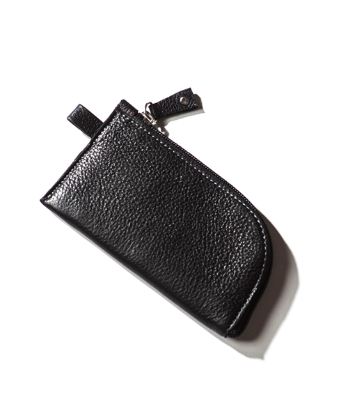 上質なシュリンク(シボ感)を全面に押し出した牛革を使用した小ケース。外側にはドッキングに便利なループを配置。ファスナーには同革にて引手を製作。中にはカードを入れるスペースもあるのでパスケースとしても使用可能。様々な用途で使用してもらえる1品。