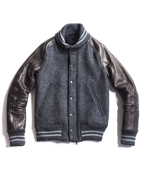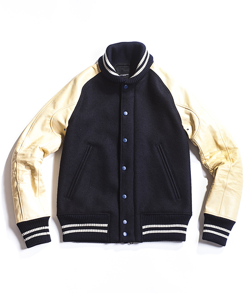 | Quality | ウールに産地、尾張尾州にて丁寧に生産される伝統的な生地を使用。ウール90%ナイロン10%。ナイロンの混紡している事で耐磨性、撥水性、強度を高めている。厚みをしっかり持ち、表面は滑らかで保温性、機能性の高い上質なメルトン生地。袖のグローブレザーは、大リーガー達が使用するグローブでも用いられる頑丈な日本産のカウレザー。レザーらしいしっかりとした表情も持ちつつ、滑らかな質感を備えている。最初は硬く感じるが、着ていくごとに風合いが増していき、着用者の体になじんだ形へとに変化していくレザー。今回のblack×blackの袖には下地の色を浮き出させる事のできる特殊な染色をした革を使用。 |