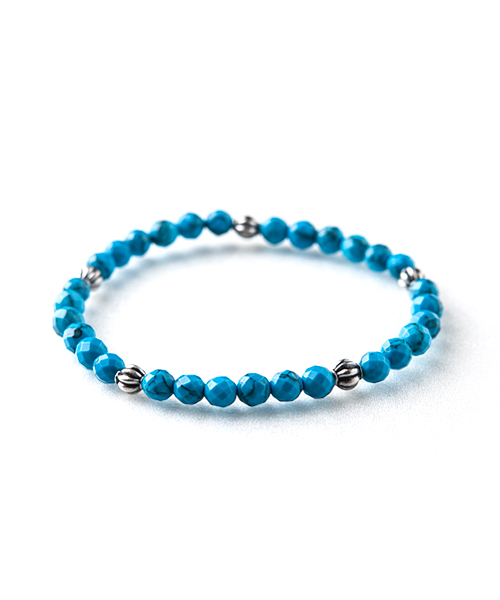 別名「トルコ石」。由来は、エジプトからトルコ経由で地中海方面へと運ばれたと云われている。6mm64面カットを施しており、ブルーの中にも違った輝きを見せることができ、薄着の季節に重ね付けして楽しめるアイテム。