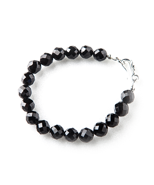 8mmのビーズに64面カットを施し、品質、反射率、輝きなど全てにおいて最高品質のブラックスピネルを使用。違うブレスレットなどとの組み合わせ付けなどに向いている1品。
