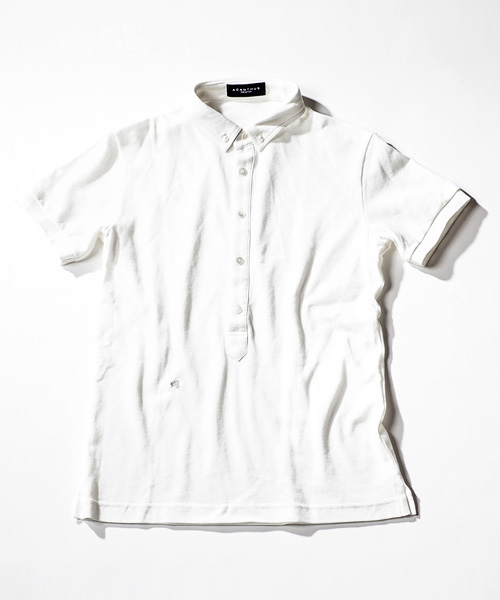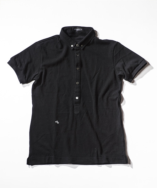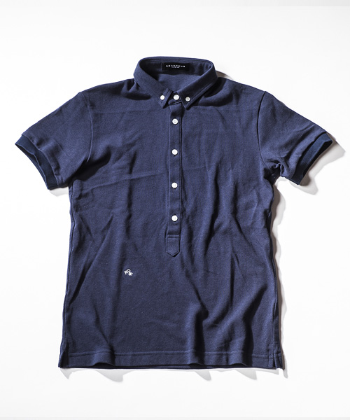 | Detail | ソフトなカノコ素材を使用したのポロシャツ。小さめのB.D衿、長めに設定された前立て、身頃左下に入るロゴ刺繍、袖口のリブ仕様が特徴的な1着。釦には本貝ボタンを使用。縫製後にワンウォッシュ加工を施している。 |