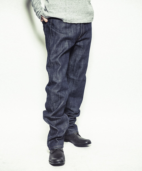 | Detail | 1890年代の501を元に、現在の技術で蘇らせたヴィンテージデニムの生地で製作したリジットデニム。ファスナーには当時のアメリカ製デットストックTALONを使用。サスペンダー、シンチバックにてウエスト調整も可能な上、ベルトループも加え実用性を追加。シルエットはウエストオーバーオールと言われた当時のシルエットを元にACANTHUSオリジナルのシルエットにパターン修正。当時のデニムの雰囲気とで完成度の高さに拘ったデニムパンツ。 |