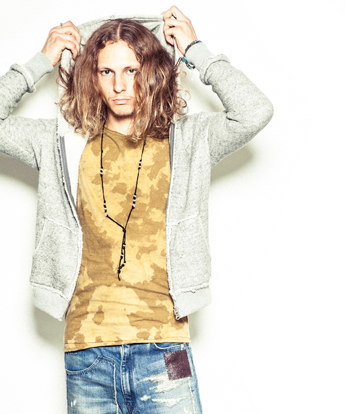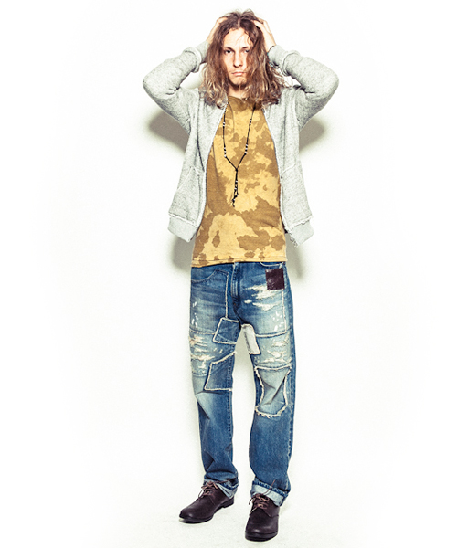 ラフィートップ裏毛を使用。中国のシルクロードに育まれたトルファン綿をベースに、エジプトのギザ、アメリカの環境に優しいスーピマの落ち綿をリサイクル混紡した自然ムラ糸コットンを使用した裏毛生地。紡績でしか表現し得ないムラ感と、自然で非常にソフトなドライタッチな風合いが特徴。