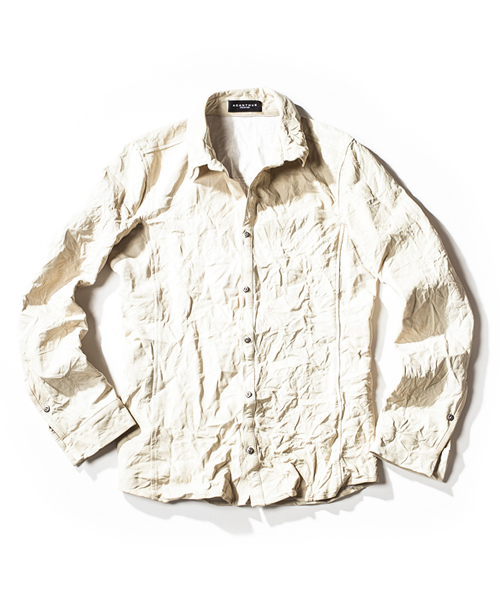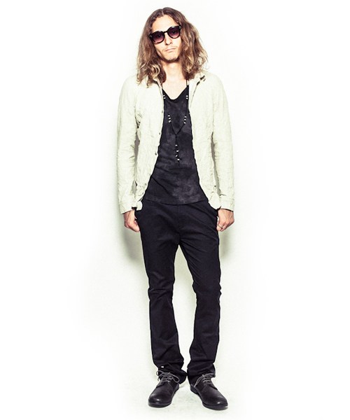 | Detail | ボンディングレザー素材を生かしたレザージレ。12SSシーズンから素材と各寸法を見直したアップデートバージョン。裁ち切りのパーツを用いて非常に軽い着心地に仕上げた1着。本来は下着と上着の間に着用する物がジレとされているが、表面をしなやかなで表情豊かなラムベジタブルレザー、裏面をコットン素材を用いているため羽織物としても機能する1着となっている。また、素材自体は非常に軽く薄い為中衣としても使える高い汎用性がある。春夏だけでなく、年中様々な場面で使用できる1着。 |
