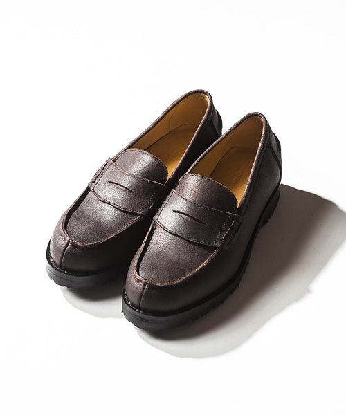 | Detail | デストロイレザーにて製作したコインローファー。ソールにはビブラムソール張る事で耐久性と実用性を向上。経年変化によって革の表情の変化を十分に楽しむ事のできる1足。 |