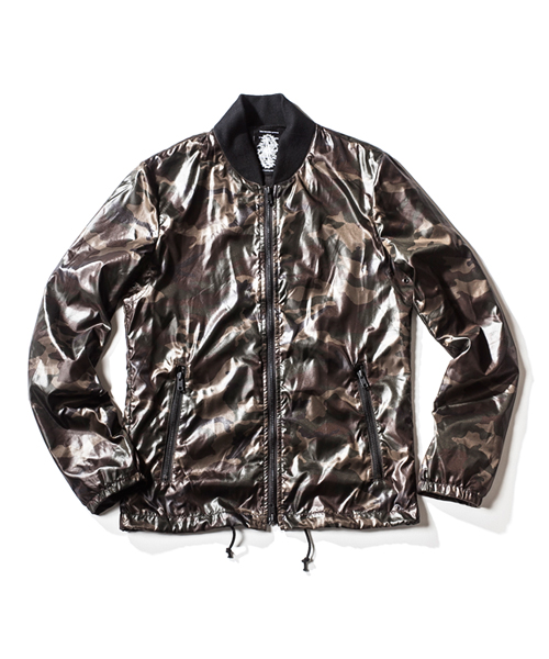 | Material | Camo:ハイマルチなナイロン糸をしようする事で、風合いを柔らかく仕上げている。ナイロン特有の発色性の良さにより、迷彩プリントもダークトーンで深みのある表情。 |