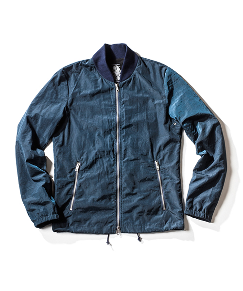 | Detail | カラーによって異なったナイロン素材、染色方法を採用。軽やかな着心地を追及する為に発汗性、通気性、冷却および乾燥効果のあるCOOLMAX素材を身頃裏地に使用。リブには肌触りの良い綿麻混素材を使用し、ファスナーにはTALONファスナーを使用。裾にはドローコードが付く。 |