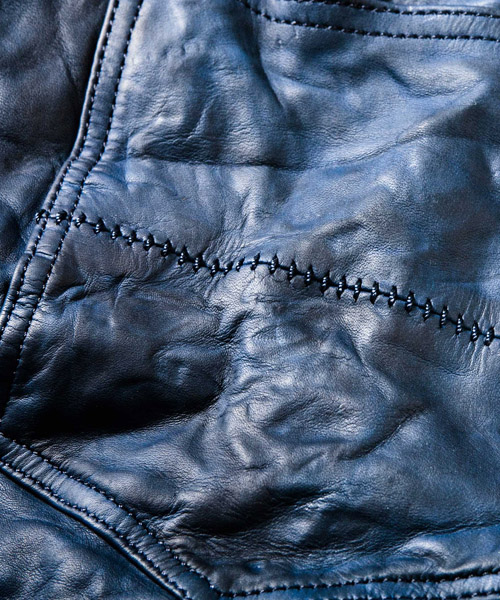 | Leather | オイルドフレンチホース。 フランスの馬革を日本国内のタンナーで丹念になめした革。この革のポイントは、ソフトな面構えの中にしっかりと程よく腰感が残っているところと、洗いをかけてもオイルの流出が少なく、ウェットタッチをキープしている点。また、オイルの入れ方によって濃い薄いの2トーンのエフェクトをつくり出す事によってナチュラルなヴィンテージ感を表現されている。 |