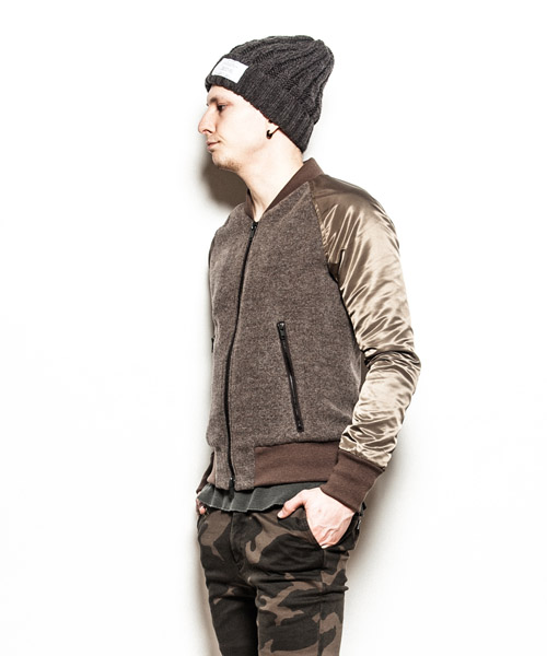 | Spec | 身頃と袖の素材を切り替えたMA-1タイプのブルゾン。 |