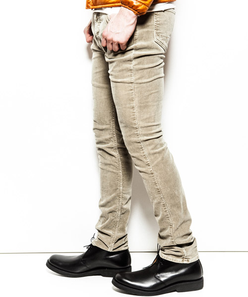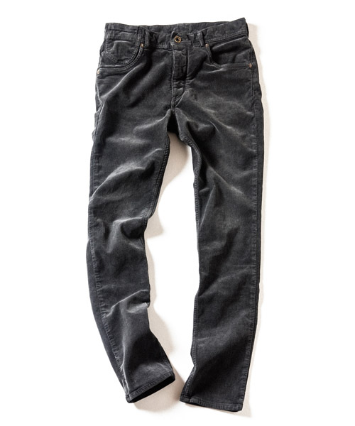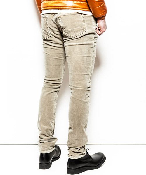 | Material | ストレッチミドルコーデュロイ。 16WELLコーデュロイにスパンの入った、履き心地の良いストレッチコーデュロイ素材。硫化染めを施し、ヴィンテージ感、アタリ感、毛羽立を表現した生地。生地の表面はパウダータッチ状の起毛で肌触りも非常に良い素材。 |