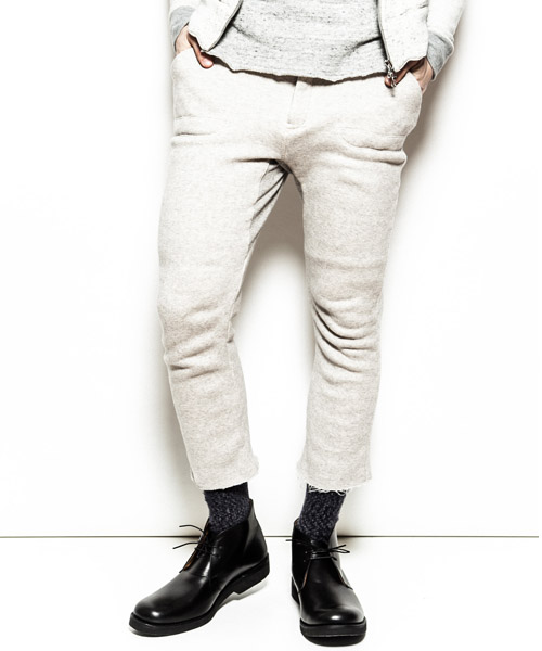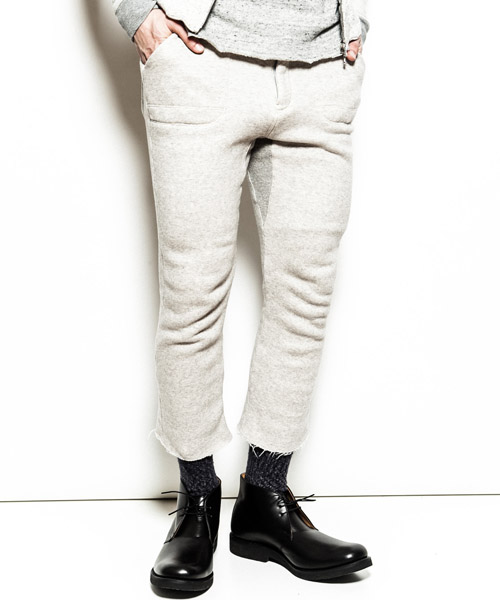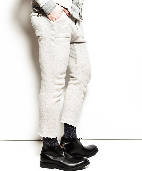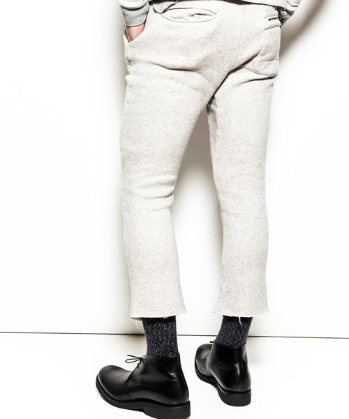 | Spec | ベイカーパンツの元型としたクロップドシルエットパンツ。ウエスト釦は、大きめのインディアンコンチョ釦を使用。裾は裁ち切りブーツなどに合わせられる丈設定となっている。 |