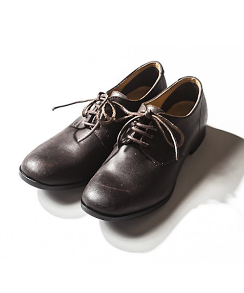 | Spec | デストロイレザーにて製作したプレーントウタイプの短靴。つま先は若干そり立っており、マッケイ製法を生かして極力コバはスマートの設定。 |