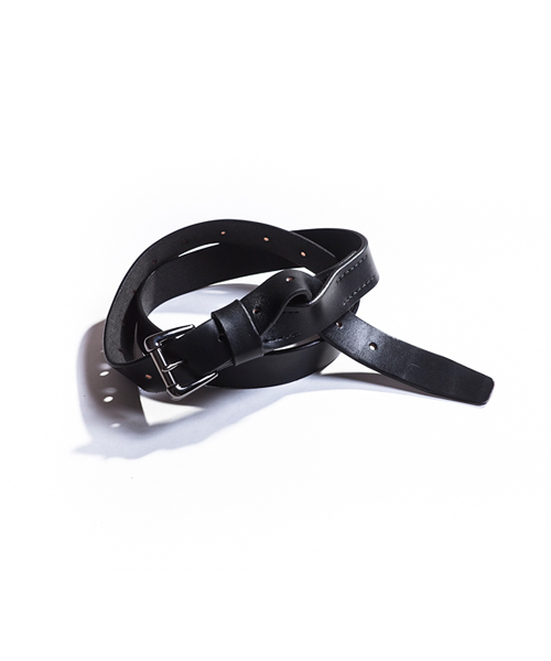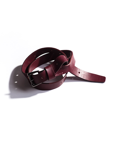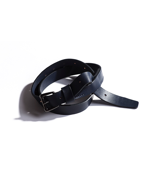 | Detail | 上質なRIOレザーを使用した1本。今回はred&navy色を新色追加。シンプルに仕上げてはいるが、特徴はヴィンテージのベルギー軍のベルトの仕様をモチーフにした差し込み口。差し込み口の周りは蝋引きの糸のハンドステッチによってしっかりと固定されている。長さは長めに設定しているのでこの先込み口にベルトの先を固定する事でベルトのの揺れを防ぐと共に、独特な角度に固定させる事ができる。装着時に腰から除くベルトの表情が秀逸な1本。 |