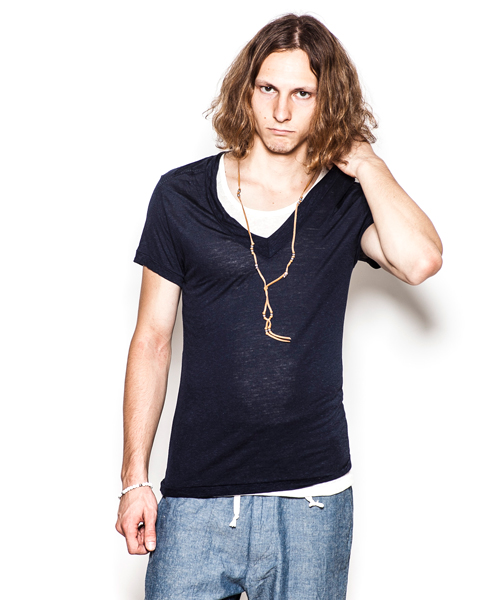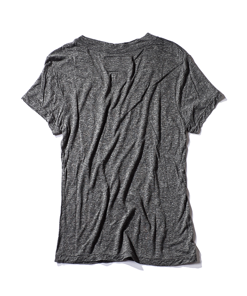 | Detail | 緩く広げたVネックライン、太めのネックラインが特徴の1枚。肩の切り替えには特殊ミシンによるハシゴステッチを施している。生地感を生かし程よくルーズに着用できるサイジング。縫製後、ワンウォッシュ加工する事でリネンの生地感を引き締め、味わい深くしている。夏に最適な生地を使用したポケットT。 |