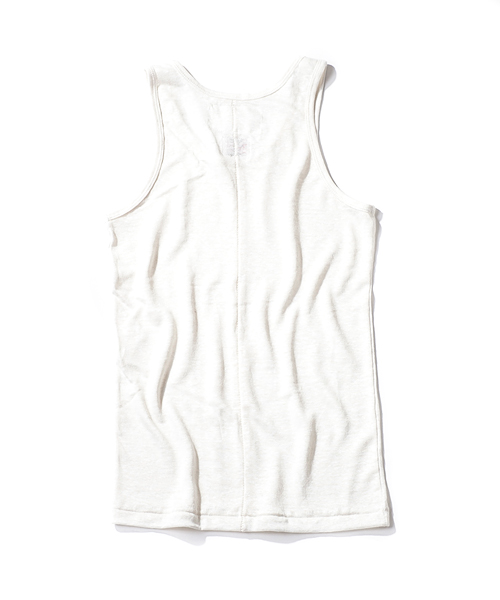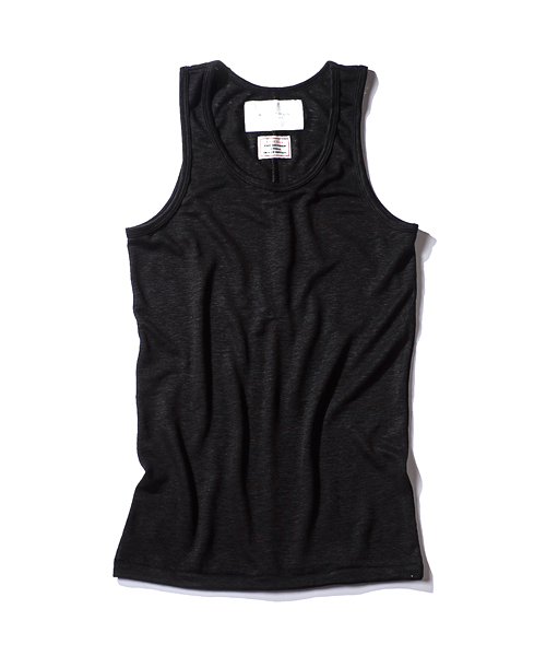 | Detail | 上質なリネン100%の天竺を使用したタンクトップ。上質な素材を生かし、シンプルな仕様、シルエットに設定。後ろ身頃の縦の切り替えには特殊ミシンによるハシゴステッチを施している。インナーとしてはもちろん、生地の透け感を生かし重ね着にも対応できる1着。 |