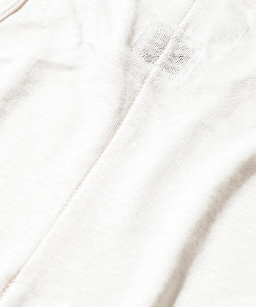 | Material | PREMIERE LINEN 1/24天竺:珍しいリネン100%の天竺素材。細番手のリネン使いの為、シャリ感がなく柔らかくしなやかな風合いを持ち、麻の持つ清涼感、吸水・速乾性に優れたプレミアムな生地。 |