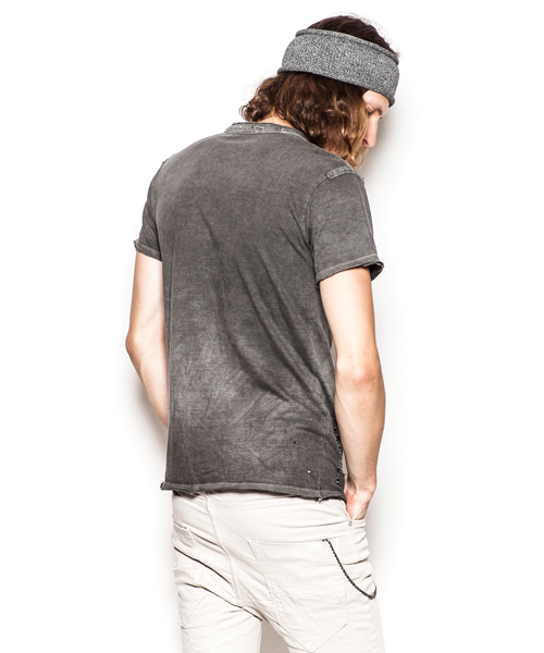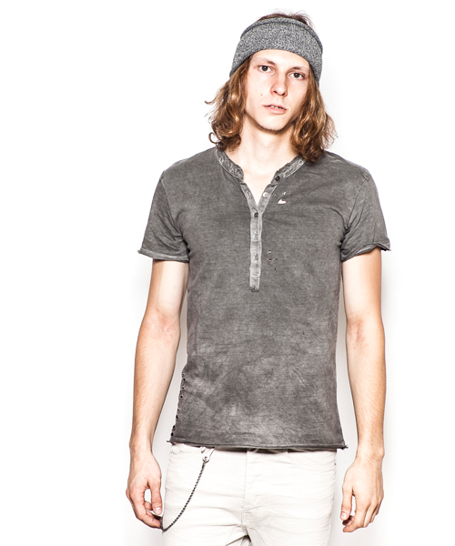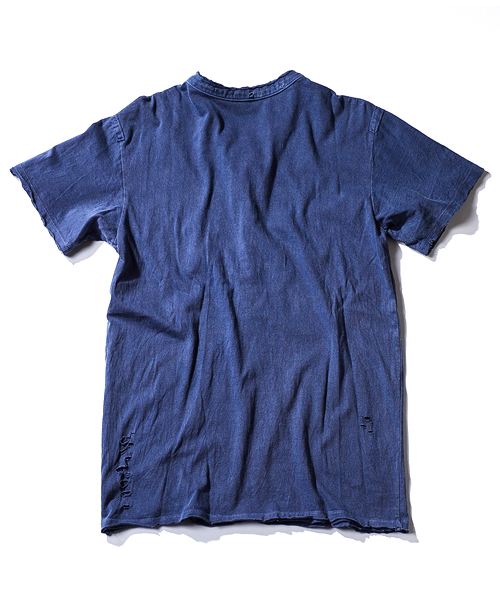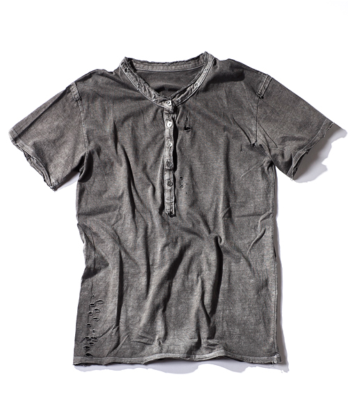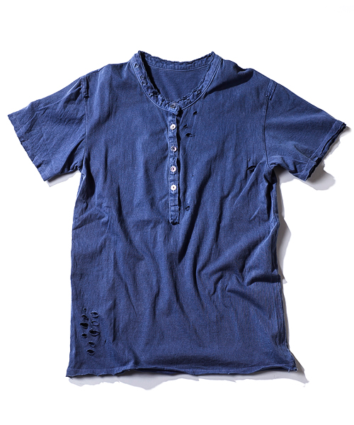 | Detail | ヘンリーネックのカットソー。製品染めによりムラ感と独特な色合い。さらに特殊な薬剤により生地を溶かし、製品染めの雰囲気に加え相性の良いダメージ加工が入る。又、フロントの釦には真鍮の釦を使用し雰囲気のある1着。 |