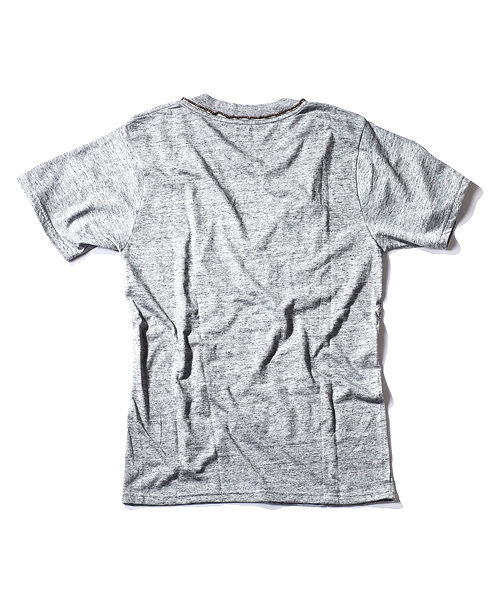 ヴィスコース粗挽き天竺:柔らかで軽い天竺素材。粗挽きTOPの粗野な雰囲気と横糸にスラブの入った触り心地の良い素材。