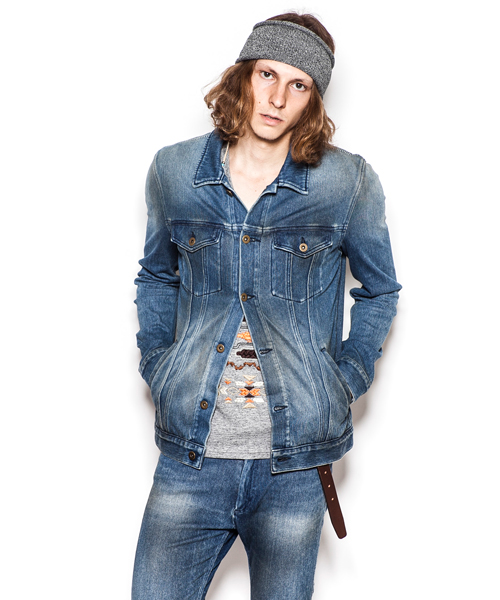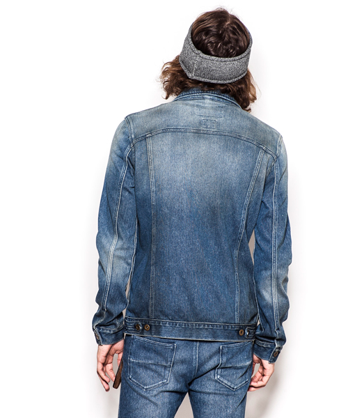 | Detail | 一枚仕立てで仕上げた、3rdタイプのニットデニムジャケット。スタンダートは胸ポケットに加えて実用的な脇ポケットを追加。タック釦はすべてブラスト加工を施した物を使用。縫製は岡山のデニム工場にて縫製し、チェーンステッチを随所に施している。縫製後、デニム同様の加工を施す事で加工デニムの表情を再現。肩のシームには特殊ミシンによる生成り色のハシゴステッチを施している。ストレッチ素材を生かしたシェイプされた綺麗なタイトシルエットの1着。 |