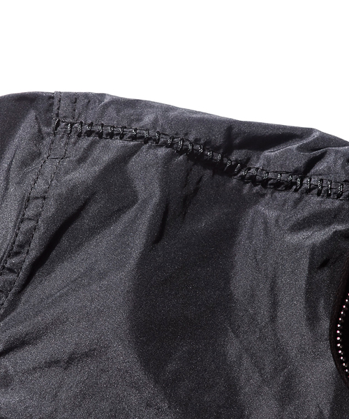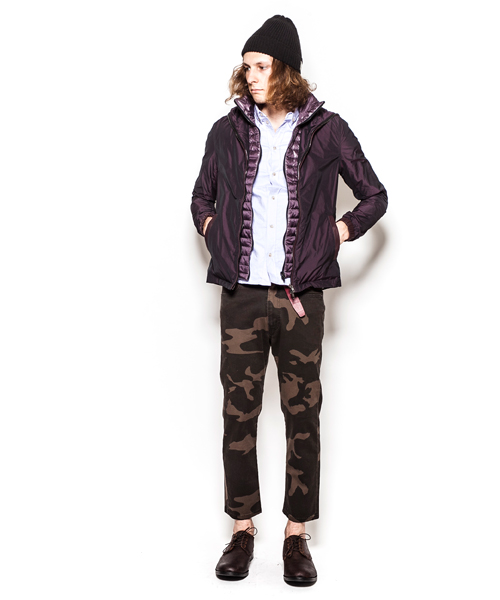 | Detail | 本体と、ライナーを切り離す事のできる機能的なパーカー。本体には形状記憶生地を使用し、ワンウォッシュ加工を施している為程よいワッシャー感を与えている。袖口縁、ポケット縁、フロントファスナー縁にはレザーによるトリミングを施している。フロントファスナーにはRACCAGNI社製の物を使用し、フード回りぐるりと閉まる仕様。ライナーには中綿キルティングタイプのベストが付属し、取り外しも容易となっている。ライナーにも脇ポケットが付いている為単体でも十分に活用が可能。汎用性に非常に富んだ1着。 |