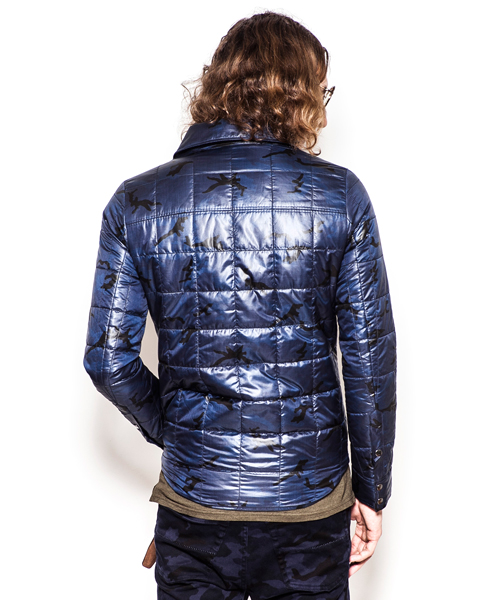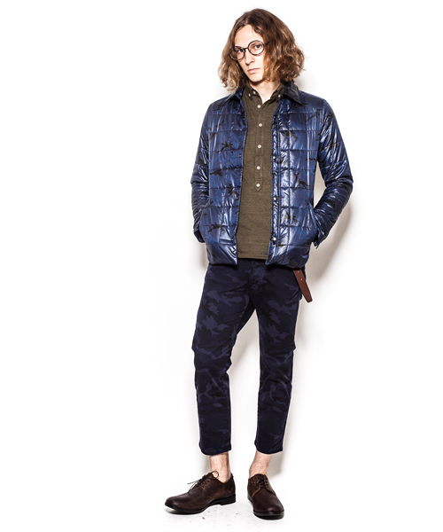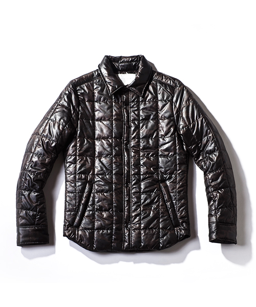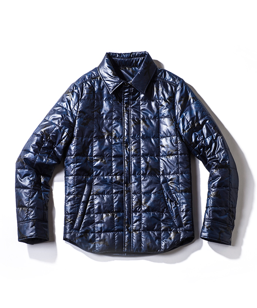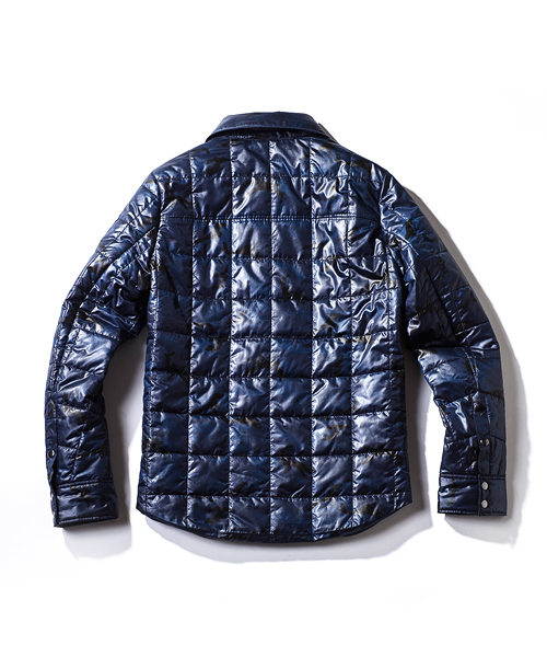 | Detail | 中綿を挟み、全体的に格子状にキルティングを施したシャツジャケット。左胸の内側にパッチポケット、両脇にポケットを配置。肩のシーム、後ろヨーク切り替えのシームにはハシゴステッチを施している。中綿のボリュームを抑えてたライトな着心地なのでアウター、インナー共に使用することができる。汎用性の高い1着。 |
