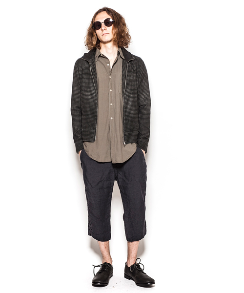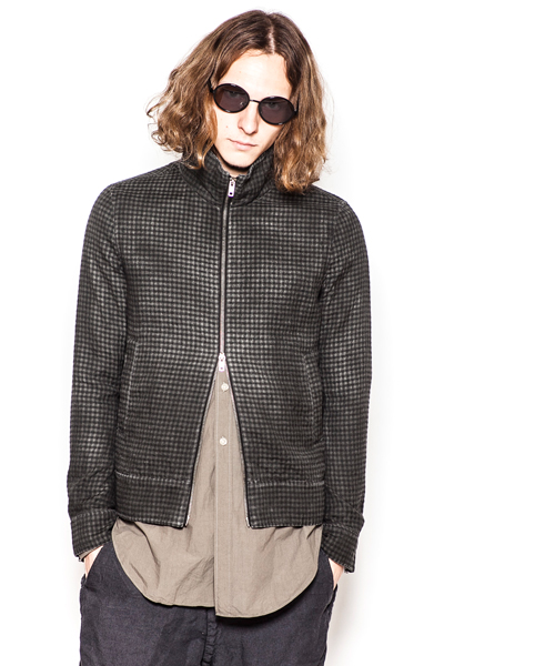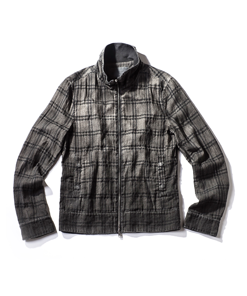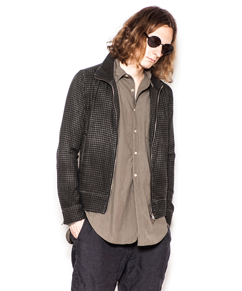 | Detail | ライダースのディティールを取り入れた、スタンドカラーライダースジャケット。衿裏にはスパンフライス素材を使用している。ファスナーにはTALON社製の物を使用。袖口はマチ付きのファスナー明きとなっている。ベルト切り替え等ライダースのディティールをシンプルに導入。両脇にはポケットを配置。肩には8番手の糸を使用したハシゴステッチを施している。さらに縫製後、顔料染料を吹き付ける製品染め加工にて独特なムラ感のある染め上がりに仕上げている。一枚仕立てなので様々な用途に使用できる1着。 |