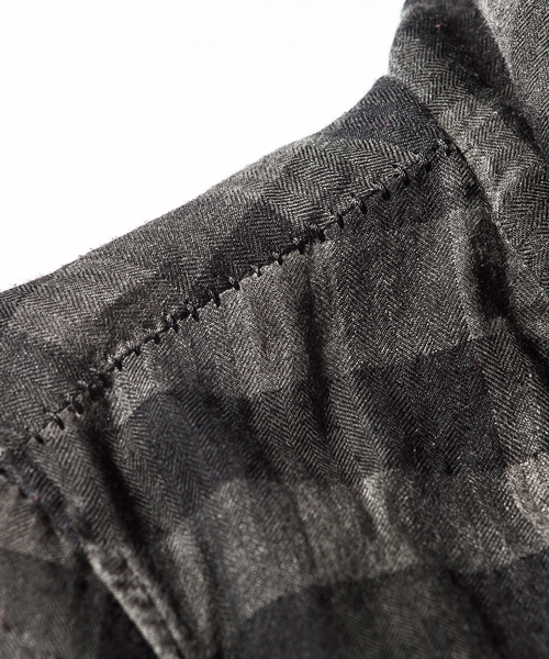 | Material | T/R ヘリンボーンチェック:コットン、ポリエステル、レーヨンを使用し織り上げる事で、生地のタッチが柔らかく、シャリ感もある肌触りの良い生地に仕上げたヘリンボーンチェック生地。 |