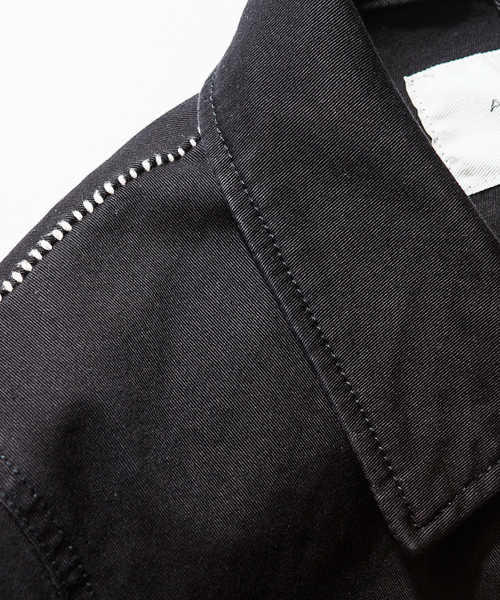 | Detail | 一枚仕立てで仕上げた、3rdタイプのチノジャケット。スタンダートは胸ポケットに加えて実用的な脇ポケットを追加。タック釦はすべてブラスト加工を施した物を使用。縫製は岡山のデニム工場にて縫製し、チェーンステッチを随所に施している。縫製後、バイオボールウォッシュを施す事でチェーンステッチを生かした程よいパッカリングを生み出している。肩のシームには特殊ミシンによる生成り色のハシゴステッチを施している。ストレッチ素材を生かしたシェイプされた綺麗なタイトシルエットの1着。 |