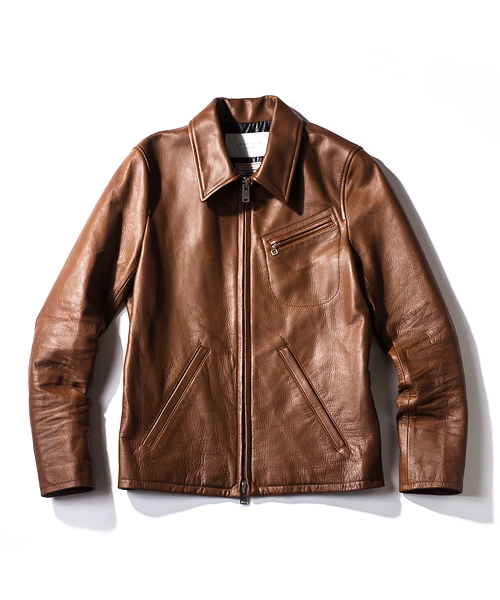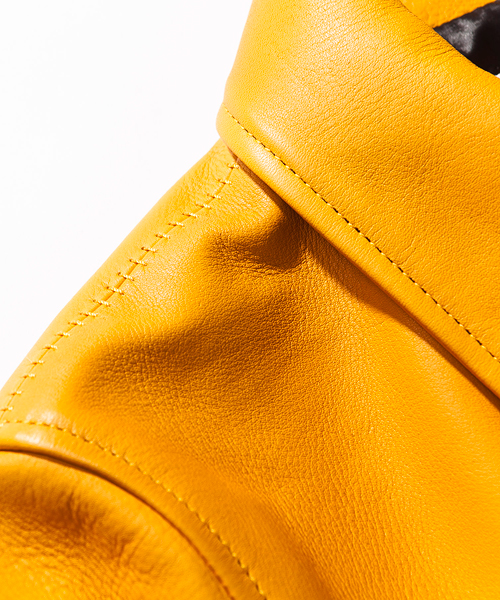 | Detail | 国産の牛革を贅沢に使用したスポーツジャケット。まだスポーツに対して決められた着用服が無かった1930年代に主に乗馬など全般的なスポーツの際に着用されていたスポーツJKT。現在では一般的になったライダースJKTの形の原型とも言われている。当時はウール素材の物が多かった中、ACANTHUSではオールレザーで製作。ファスナーにはTALON社製の物を使用。身頃裏地には職人による天然染めのコットン生地、袖には極僅かに目立つ迷彩柄の滑りの良いポリエステル生地を使用している。肩の縫い目には0番手の極太糸にて職人の手作業によるハシゴステッチを施している。シルエットは現代的に改良し、長年レザーを縫い続けている日本の職人の手で完成した、着込む毎に風合いを増す1着。 |