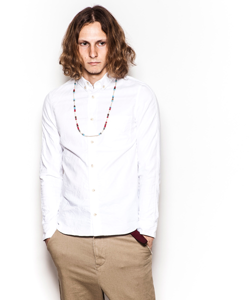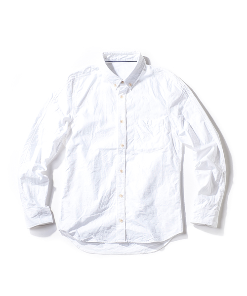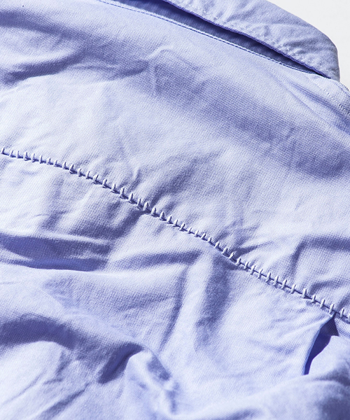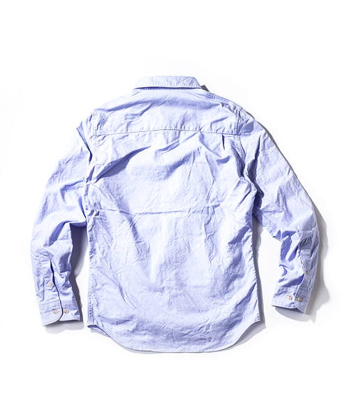 | Detail | SH1401のロングスリーブバージョン。アメリカンオックス素材を使用。釦にはACANTHUS刻印入りのオリジナル釦を使用。第3、第4釦には表裏にボタンが付き、おがみ合わせで釦を閉める事も可能。おがみ合わせにすることで、よりラフな着こなしを楽しむ事ができる。肩に三角型の切り替えを追加。後ろヨーク切り替えには生成り色の糸を使用したハシゴステッチを施している。毎回微調整を加え、定番的にリリースしているB.Dシャツ。縫製後ワンウォッシュを施している。 |