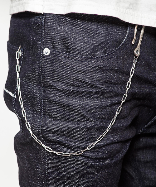 主張しすぎないシンプルなデザインのチェーンを使用。幅広いスタイリングに合わせやすいアイテム。チェーン一つ一つにカットを施し、シンプルなデザインの中にも、デザイン性を表した1品。