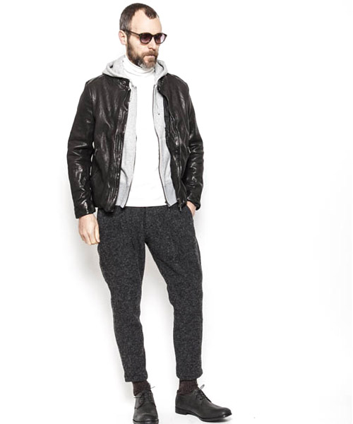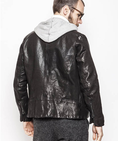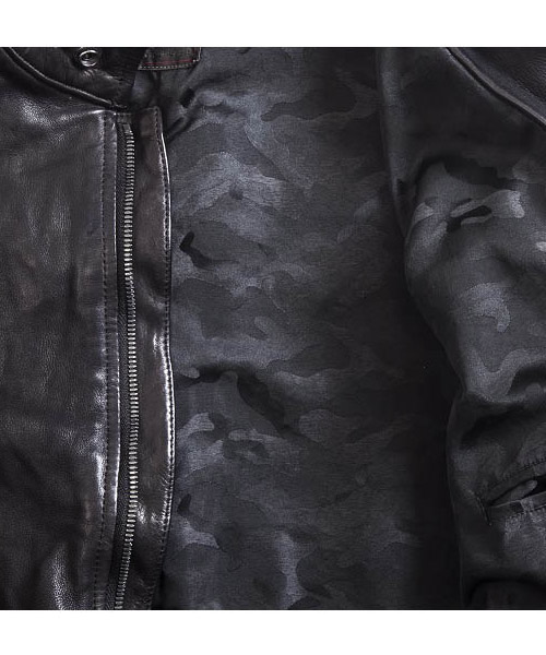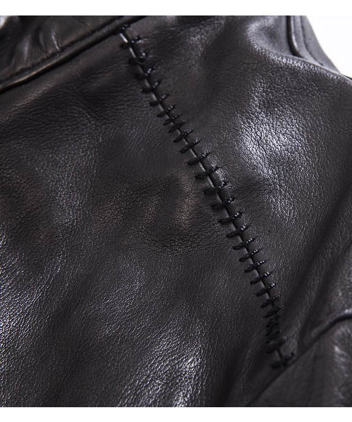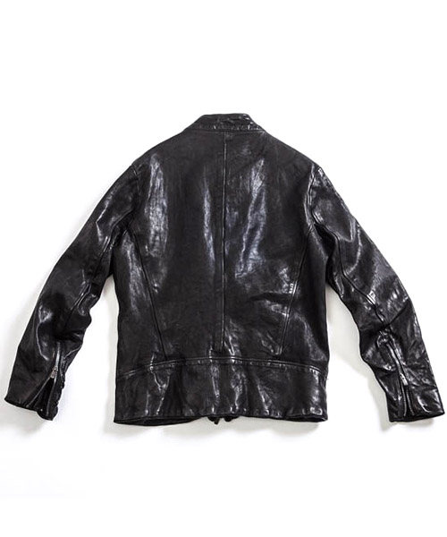 | Spec | カーフという稀有な素材を大胆に製品染めした1着。加工にて生まれる表情を損なわない為に無駄を省いたシンプルなデザインのシングルライダースにて製作。クラシックなモーターサイクルのライダースジャケットのディティールを残しつつ、肩の切り替えには、職人による手作業のハシゴステッチを施している。身頃裏にはポリエステルの迷彩ジャガード生地を採用。袖には肌滑りの良いキュプラ素材を使用。ファスナーにはハードな製品染め加工に耐えうる高品質なEXCELLAファスナーを採用。オイルをたっぷりと浸透させて製品染めを施す事で滑らかな質感を実現している。製品染めでしか表現できない色味と素材感、革の価値を十分に体感する事のできる1着。 |